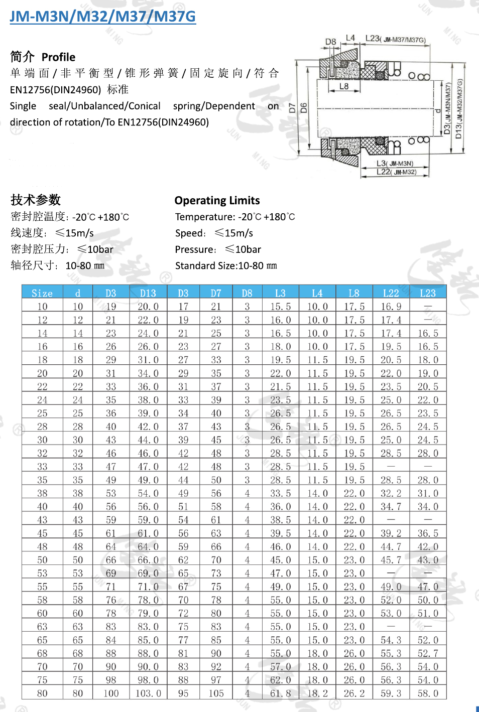 M3N系列的機(jī)械密封,結(jié)構(gòu)簡(jiǎn)單,應(yīng)用廣泛,可靠性好。適用于清水泵,污水泵,潛水泵以及化工流程泵等。