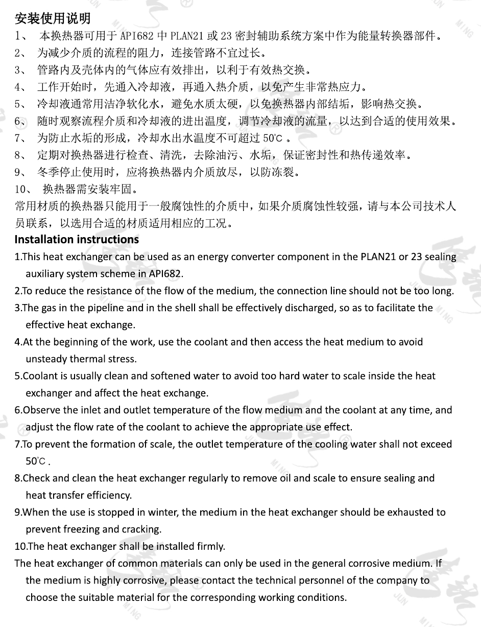 JM-H系列機械密封輔助系統的換熱器采用盤管結構,導熱面積大,能更好的將熱流體的部分熱量傳遞給冷流體,對冷卻液的降溫冷卻效果更為明顯,為機械密封提供更好的工作環境。主要用于API682沖洗方案PLAN21、23等。廣泛的應用于石油、化工、動力、輕工、機械、冶金、交通、制藥等多種領域中。