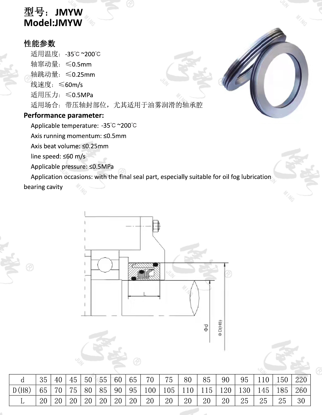 ○適用場(chǎng)合:帶壓軸封部位,尤其適用于油霧潤(rùn)滑的軸承腔